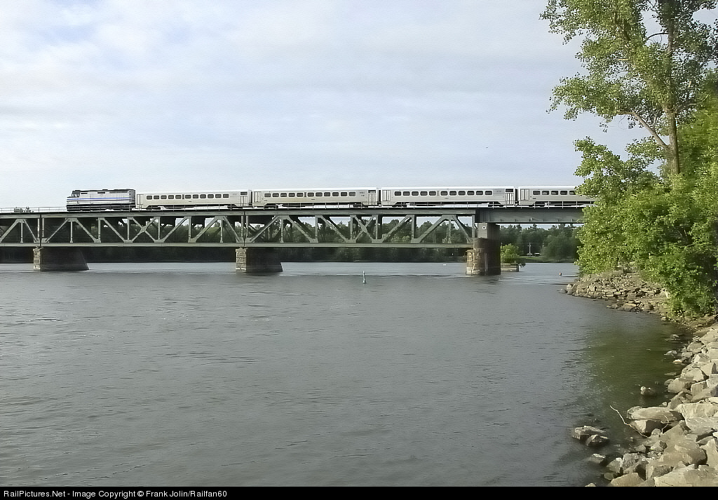 The fog has risen from the Richelieu Valley as the St-Hilaire-Montreal commuter crosses the Richelieu River at sunrise