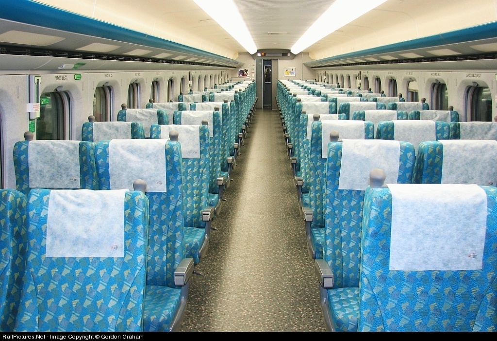 Here is the airplane like compartment of the Standard Class of a new Taiwan High Speed Rail 700T Series Shinkansen . My first trip to Taiwan .