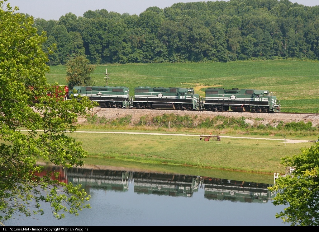 RailPictures.Net Photo: EVWR 3834 Evansville Western Railway EMD GP38-2 at Belknap, Indiana by Brian Wiggins