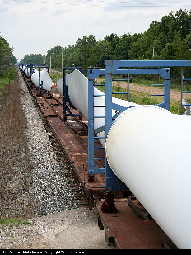 Saginaw Bay Southern Railway train Z117 handled a unit train of wind turbines. The train is destined to the thumb of Michigan.