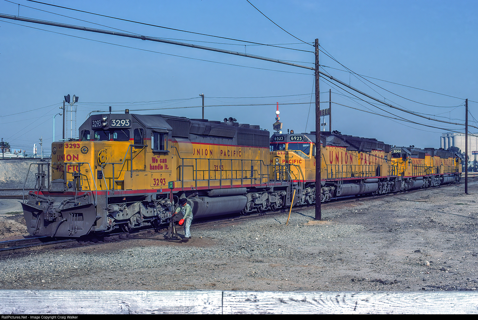 While most workers are home enjoying their Thanksgiving feast, railroaders still must work, such as the switchman and other crewmembers moving this set of power (UP SD40-2 3293, DDA40X 6923, SD40-2 “Fast Forty“ 8044 and DDA40X 6924) into Union Pacific’s East Yard.