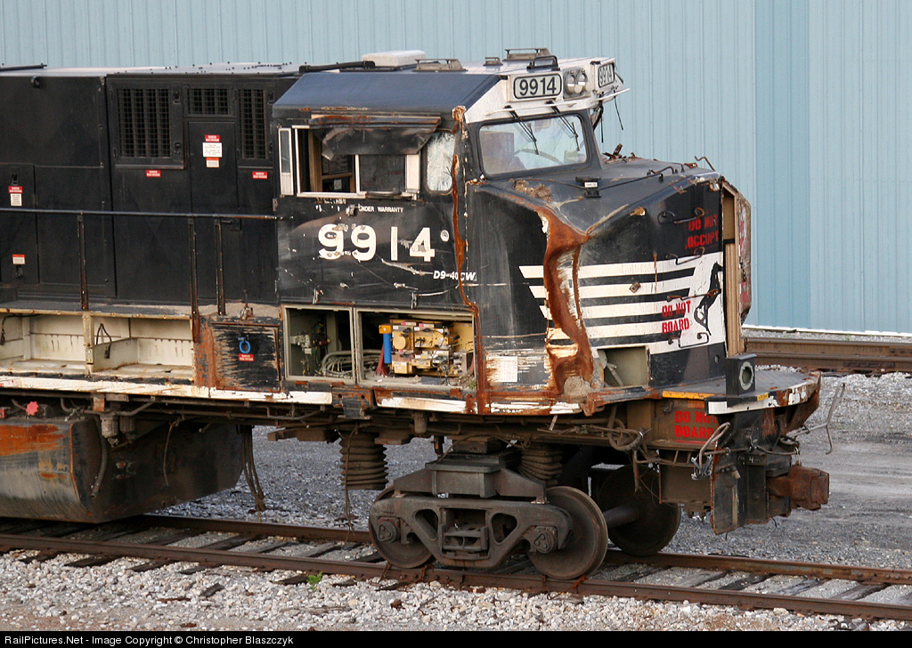 Gotta love the "Do Not Board" stencils even though the locomotive has no front steps. Note the new trucks NS is adding to the C40-9Ws to give them better tractive effort.