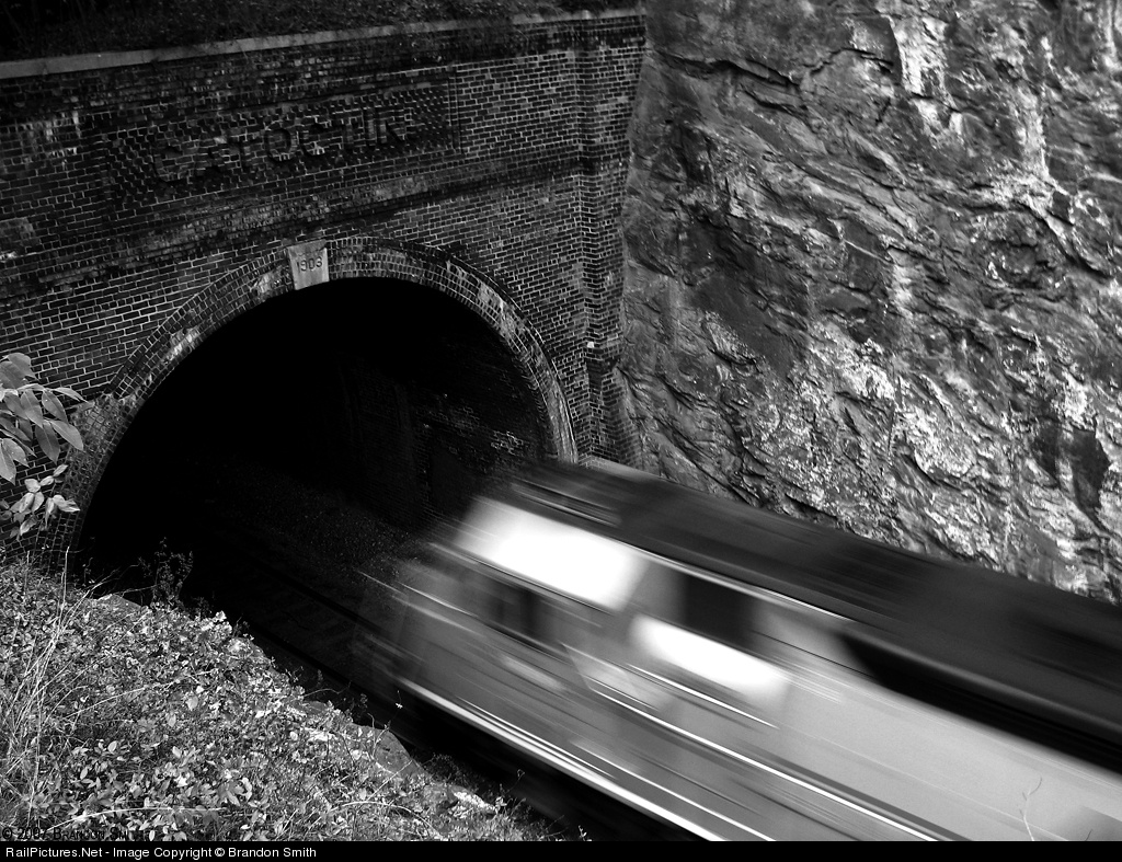 As darkness closes in, a MARC commuter train rushes into Catoctin Tunnel hurrying towards it's next stop, Brunswick. Catoctin Tunnel, built by the B&O Railroad, was completed in 1903.