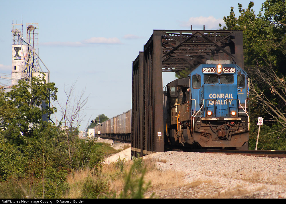 Roadrailer train 261 crosses the Auglaize River at Oakwood on it's westbound journey to Fort Wayne & Chicago.