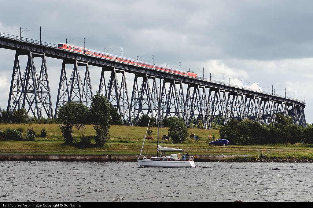 Regional Express RE21070 head north with BR 143 pushing at the famous Rendsburg bridge in northern Germany. Recent photos of #195699 and #195701 captured at the same bridge stimulated me to submit this photo.