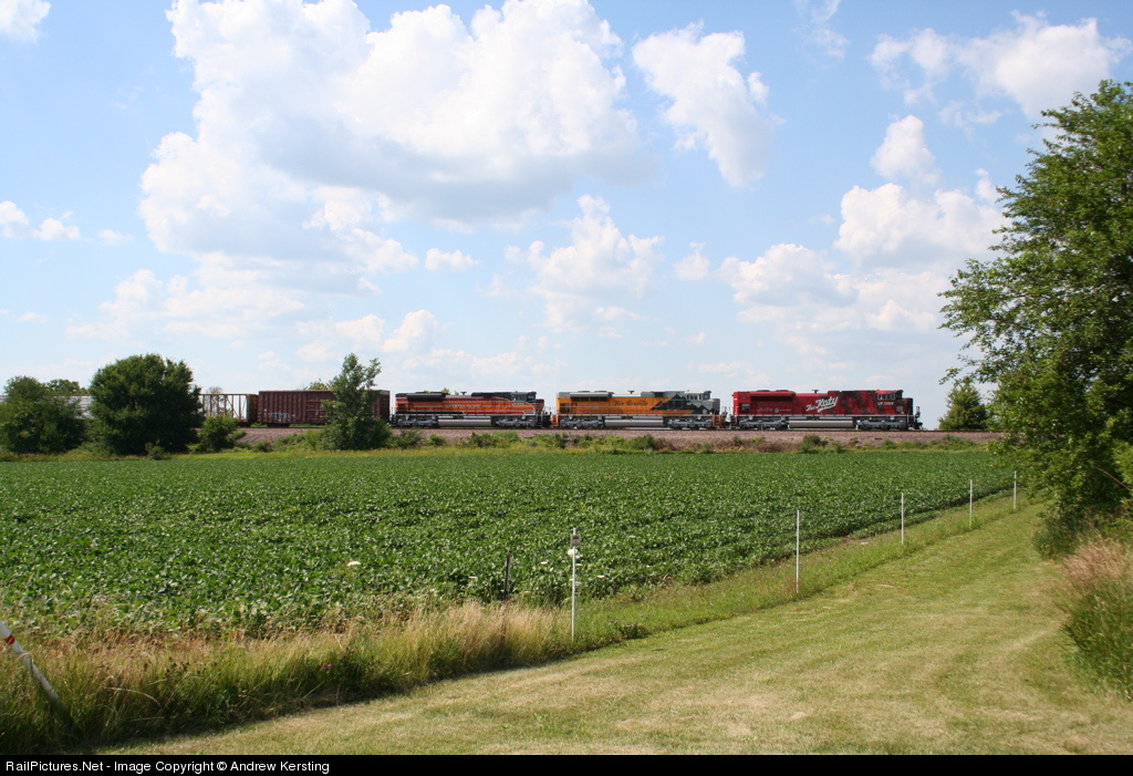 | UP 1988, 1989 and 1996 race across a soy bean field as they lead train MNPPR toward Chicago, Illinois. |