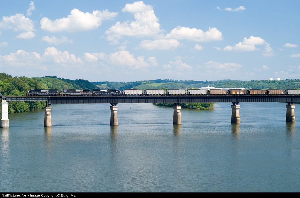 Coal train 724 crosses the picturesque Tennessee River at Loudon.