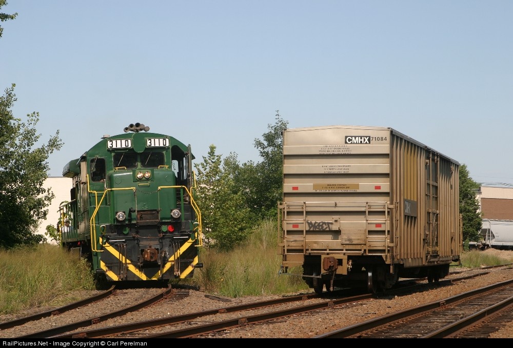 RCRY 3110 glides along the Vesuvio Food Company siding. To the right is a former Amtrak Mail Handling Car, now with the reporting marks CMHX.