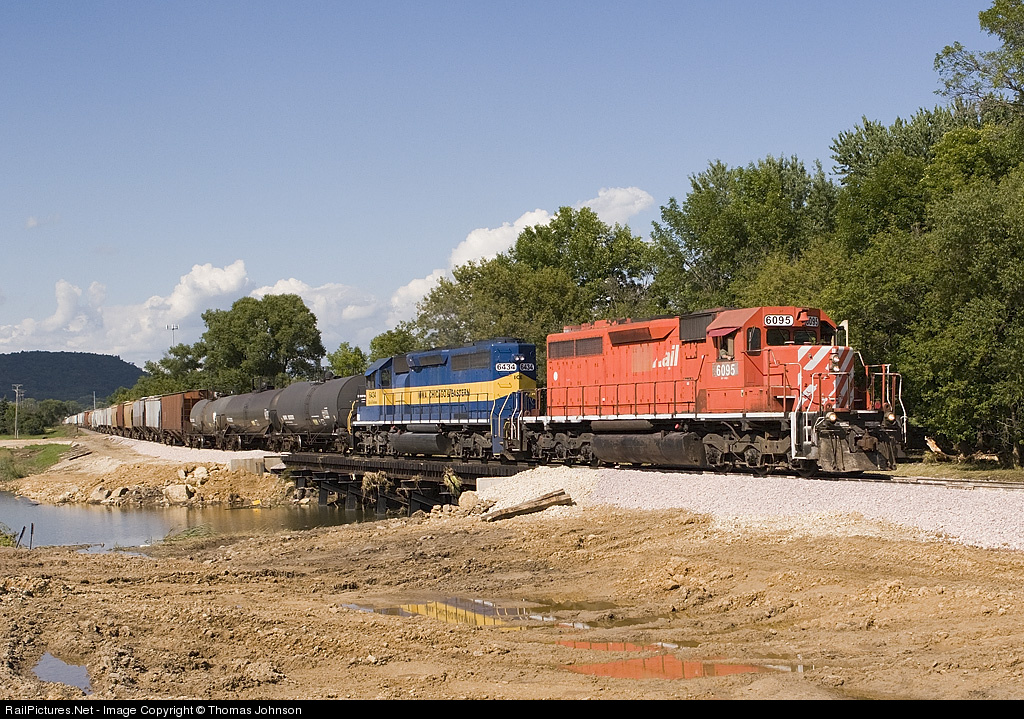The IC&E sent a train to Winona, MN to pick up DM&E cars left stranded after 17+ inches of rain washed out the DM&E line from Waseca, MN - Winona. The train is leaving LaCrescent over tracks recently placed back in service after being washed away by the same storm.