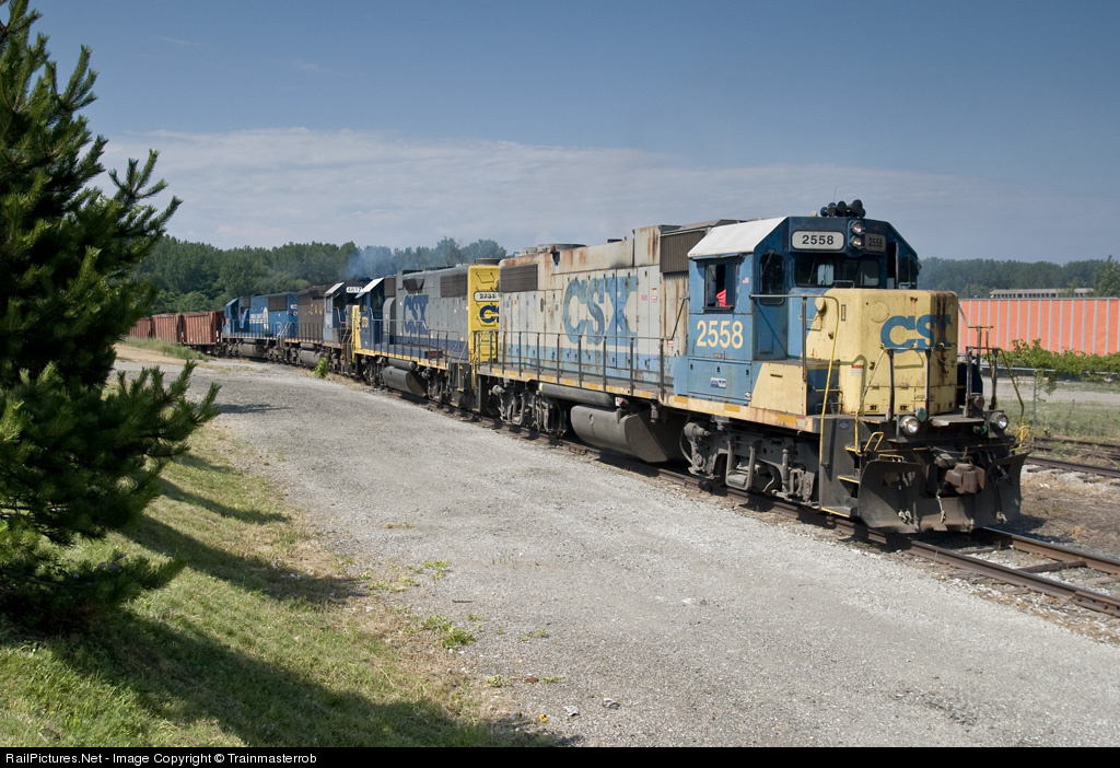 What a surprise to catch a former Conrail SD50, the last C&O SD40, and a pair of GP38-2's shoving empty ballast hoppers towards Erie Sand and Gravel. Later in the evening, the x CR and C&O motors would travel east with a cut of loaded ballast hoppers from Erie.