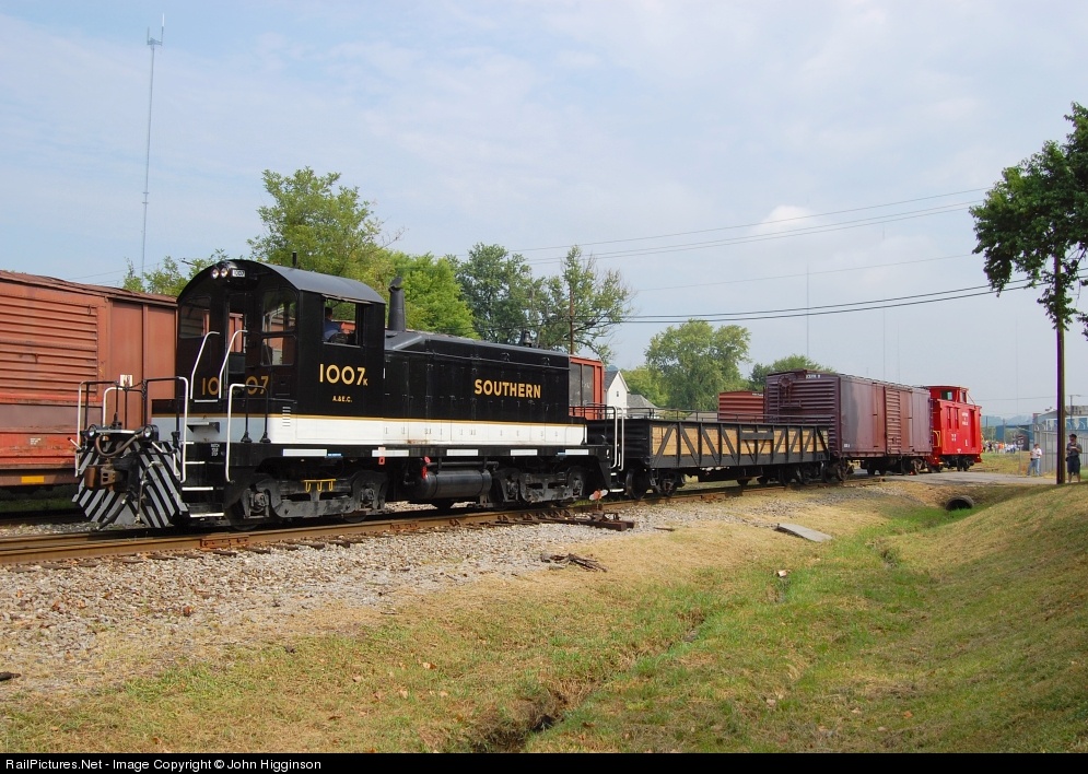 | The 1007, in a fresh coat of full Southern paint, makes an appearance at the Three Rivers Rambler railfan event following the NRHS convention. |