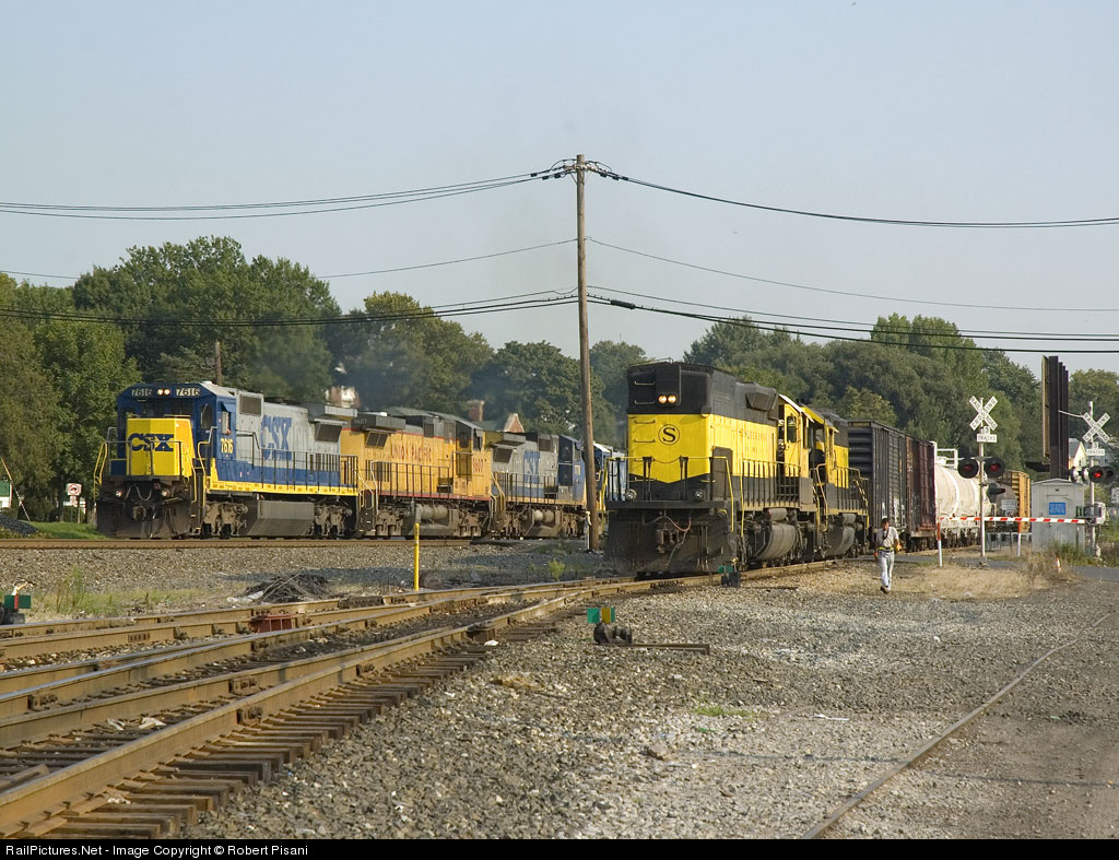 WS-3 is overtaken by a fast moving CSX Q418 on the adjacent River Sub. The tunnel motor is assigned to a local and looks odd running long hood forward.