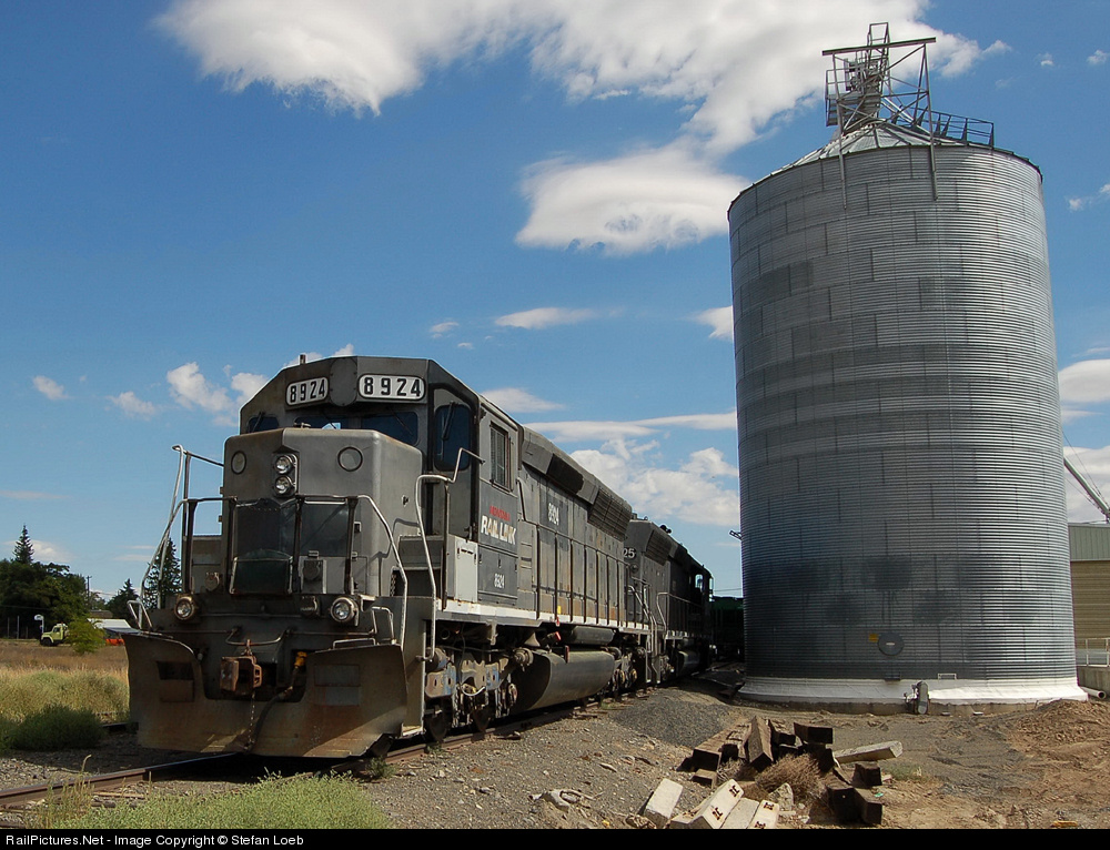Former MRL SD45's 8924 and 8925 rest at the grain elevators of Hartland, WA after delivering 24 empties to the town. The loaded train will return to Cheney, WA in a few days. The Eastern Washington Gateway Railroad operates a former Watco PCC branch. The state of Washington owns the branch.