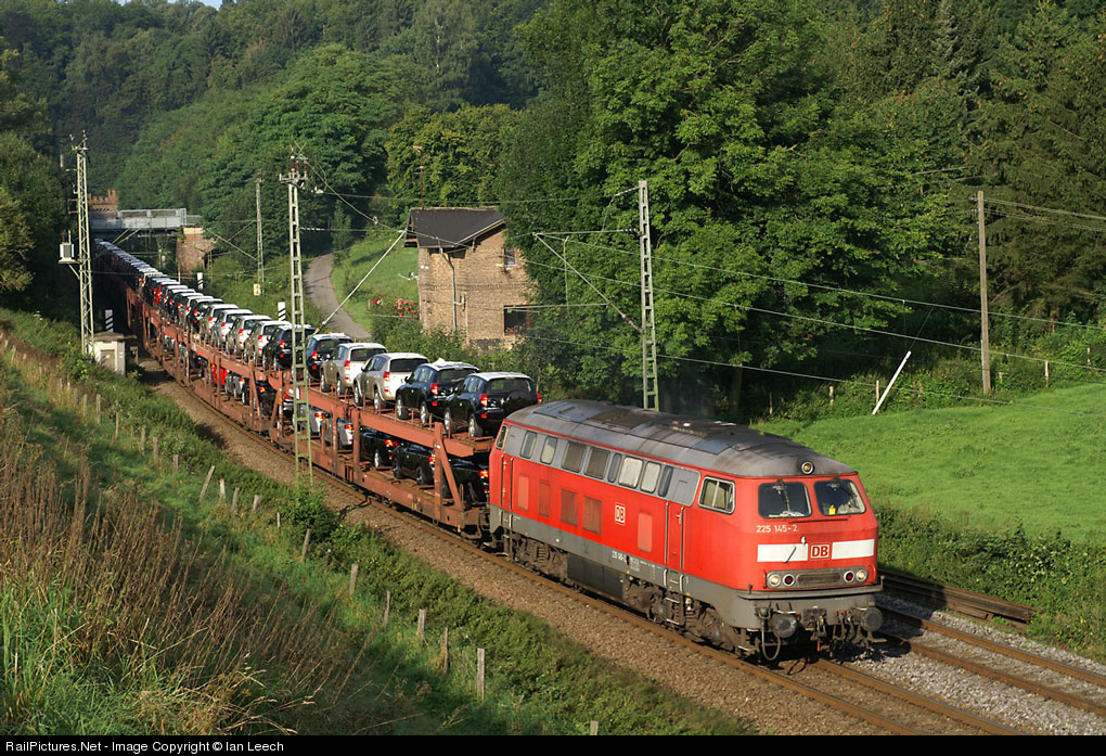 225145 hauls a train of Toyota cars across the Belguim/German border into Aachen.