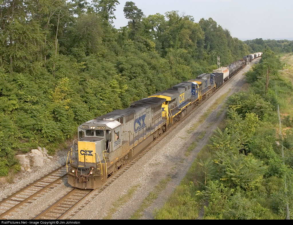 One of only 3 CSX C40-8s remaining in the blue and gray scheme makes its way west towards Cumberland MD after running wrong main by the signal at Hobbs.