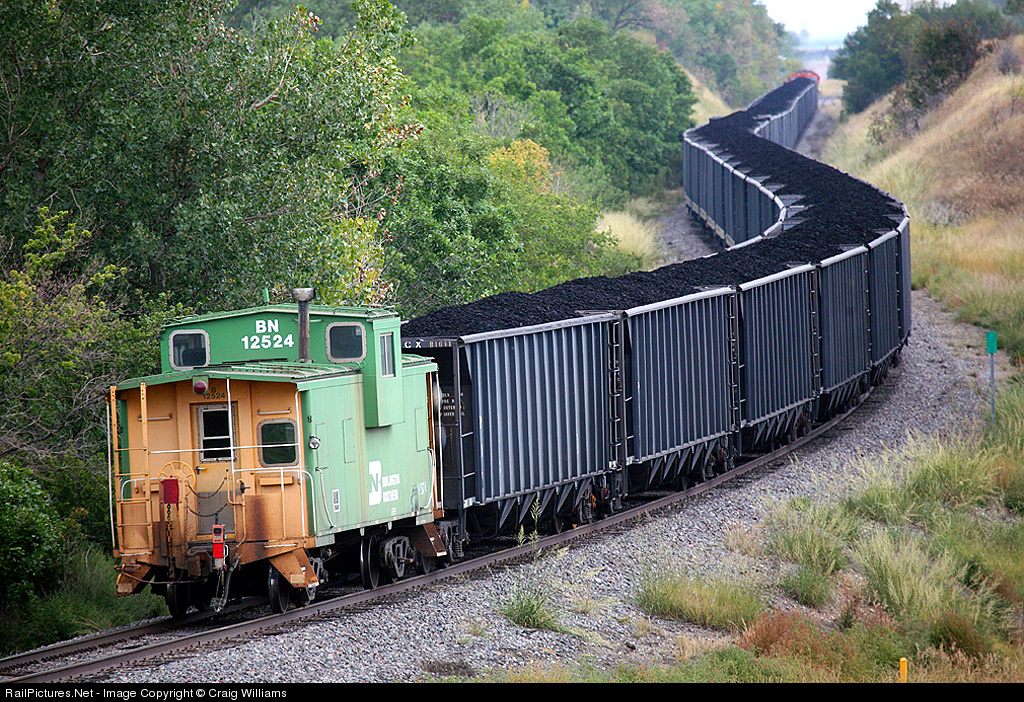 A waycar brings up the rear of this 50 car coal train on the Zap Line. This shuttle train works between Beluah, ND and the generating station at Glen Herald, ND. Glen Herald is at MP 47 on the Zap Line. The Antelope Vally Mine at Beluah is on a small branch off the mainline at MP 72.