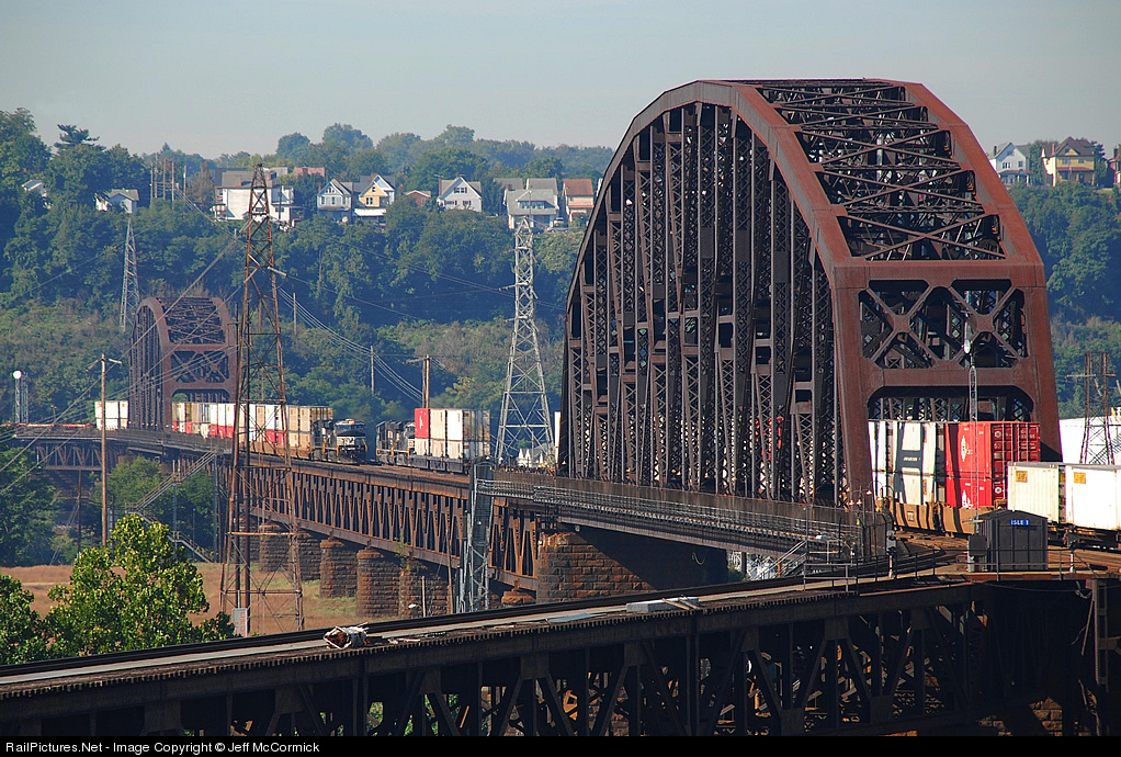 Running northbound, NS 7517 meets southbound NS 2618 on the OC Bridge on this late summer morning.