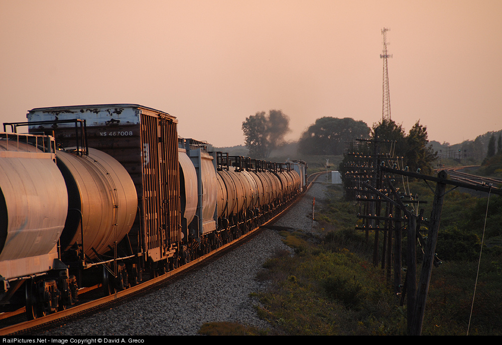 NS 8437 heading west towards Erie, PA with a clear signal showing in the distance. Nikon D200 18-200 VR.