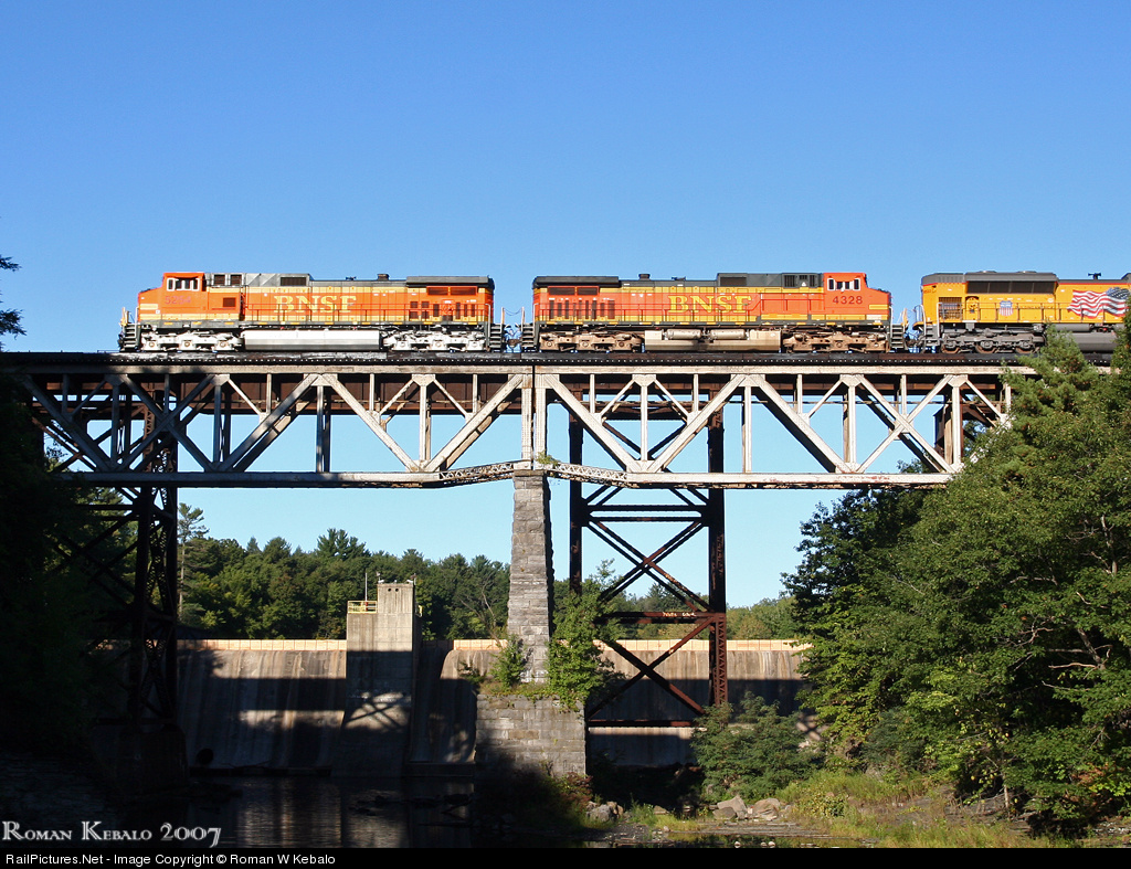 | An hour after Q390, Q380 rumbles across the bridge...for all the previous times I've made trips to the Selkirk area, my luck with foreign power was hardly existant...this day seemed to make up for this defisit twofold...two BNSF Dash 9s followed by a sparkling UP SD70ACe... |