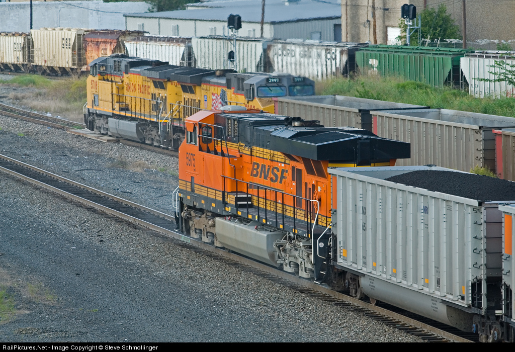 Unit trains gather south of Tower 55. In the foreground, a DPU brings up the rear of a southbound BNSF coal load, while a northbound UP coal empty waits for a fresh crew. Meanwhile, a loaded UP grain train makes its way south toward the Midlothian Sub on the ex-Mopac line.