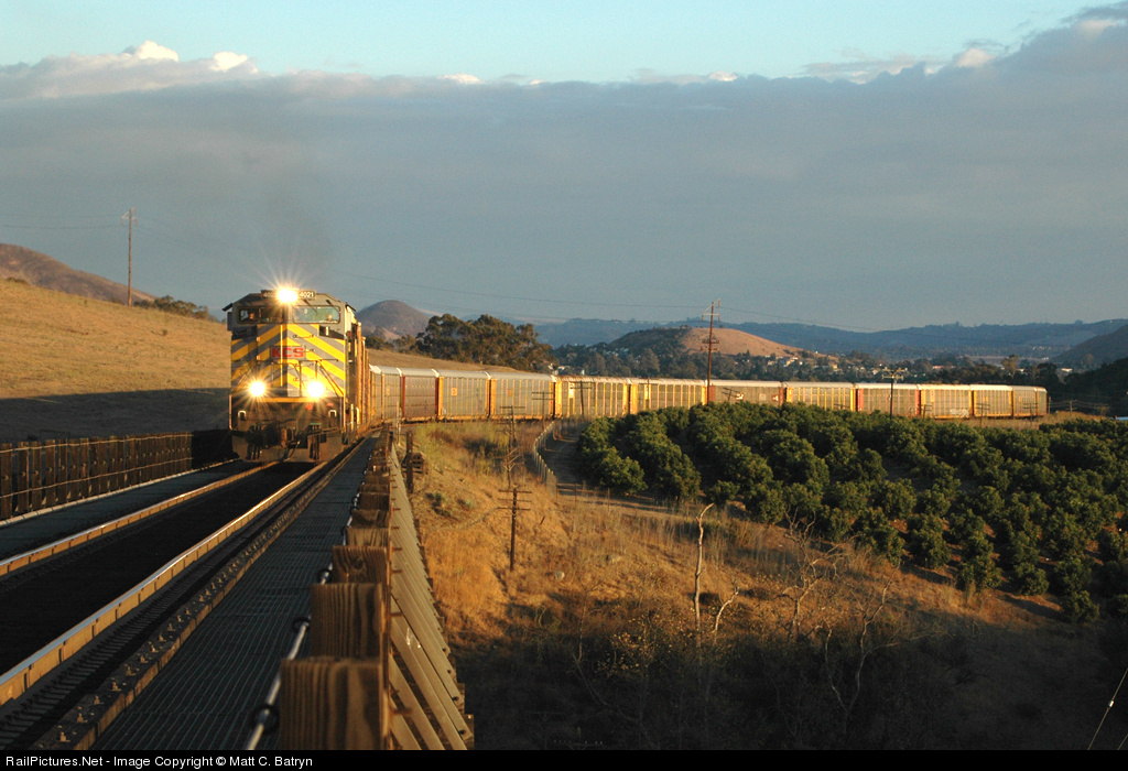 Kansas City Southern SD70Ace number 4021 leads a northbound autos train up Cuesta Grade. Here it makes its way across the Stenner Creek Trestle. Nikon D70, 28-70mm.