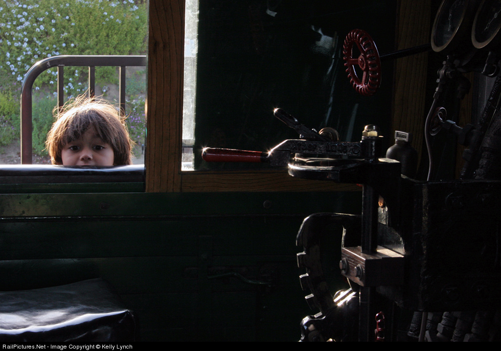 A young student peers into the cab of 3751 during the San Bernardino Railroad Historical Society's Education Outreach Program in San Pedro, California.