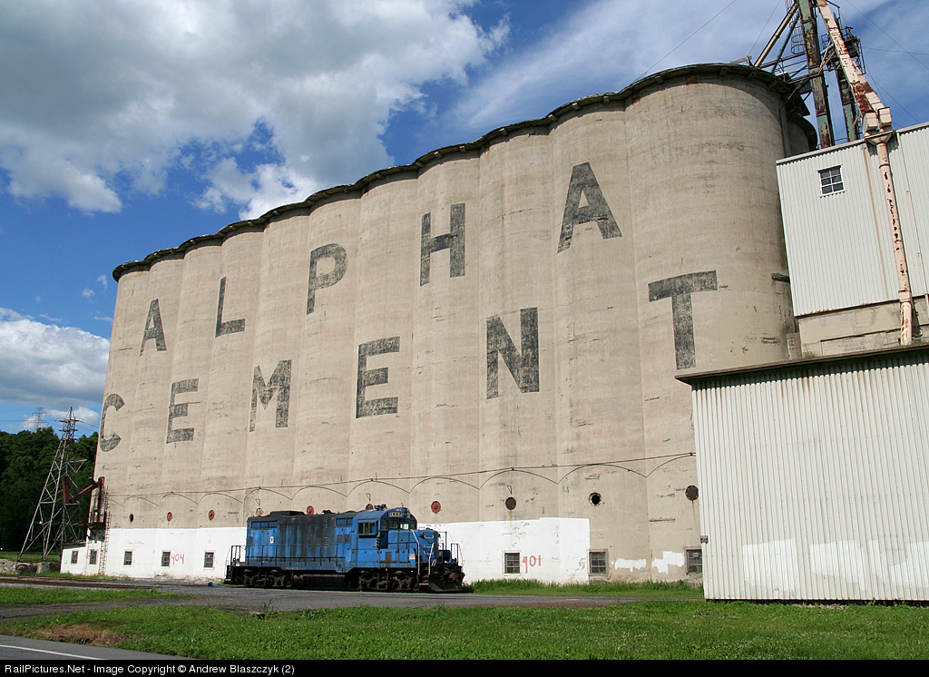 | ConAgra's switcher is seen sitting at Alpha Cement in Martins Creek due to traction motor problems. BDRV 1850 was brought down from the Bel-Del to handle the duties at ConAgra in the meantime. Although not as large as the structures in the Midwest, the Alpha Cement plant is pretty impressive in comparison to the Geep. |