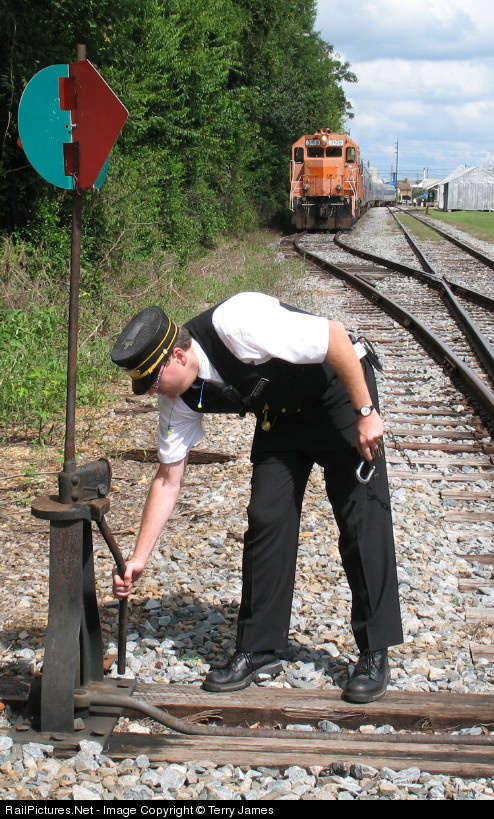 Conductor Lee Kinnamon aligns the switch.