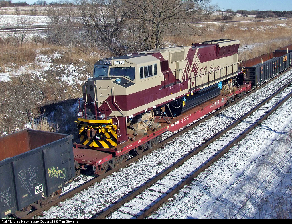 In the month of February, CN shipped many of these smaller gauge SD70Ms to Halifax to be transported by boat over to South America. Engine 736 was one of two on train M308 on this day.