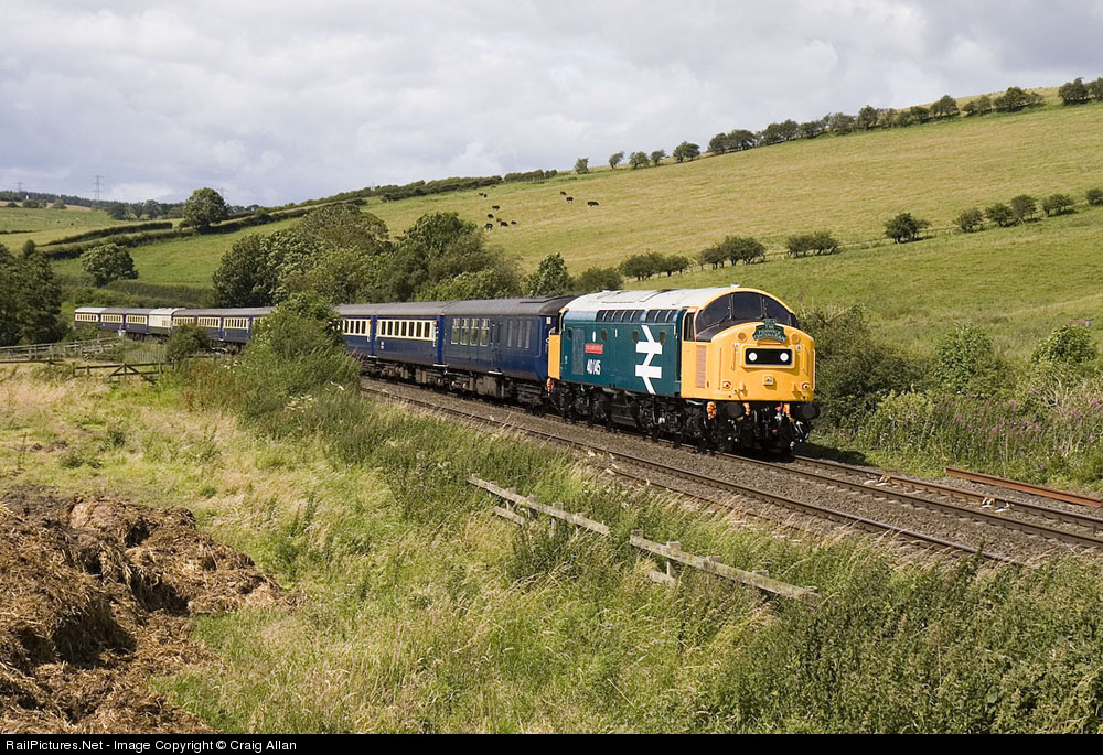 | 40145 passes Fourstones near Hexham about 40 minutes late with Fishwicks Centenary Pullman running as 1Z41 13:21 Carlisle to York.