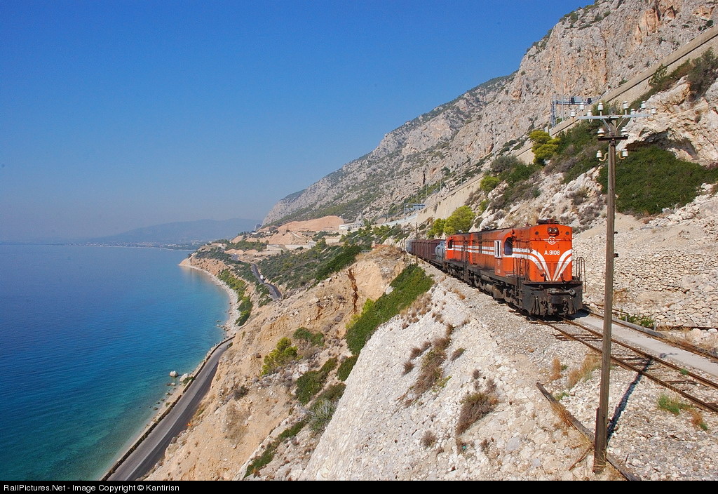 ALCOs with freight train in one of the most beautiful routes in Greece
