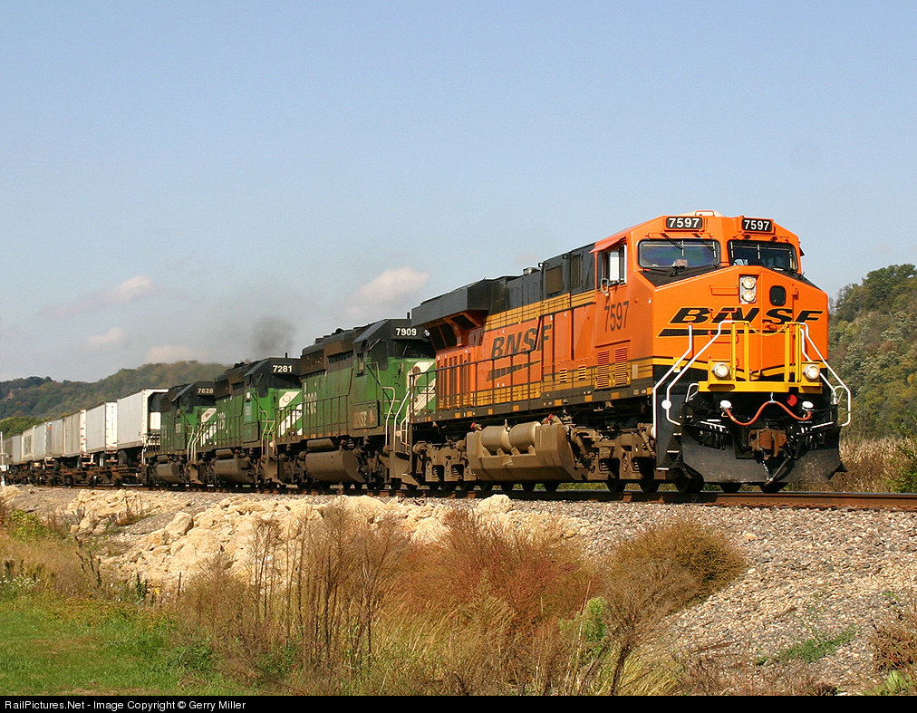 RailPictures.Net Photo: BNSF 7597 BNSF Railway GE ES44DC at Potosi, Wisconsin by Gerry Miller