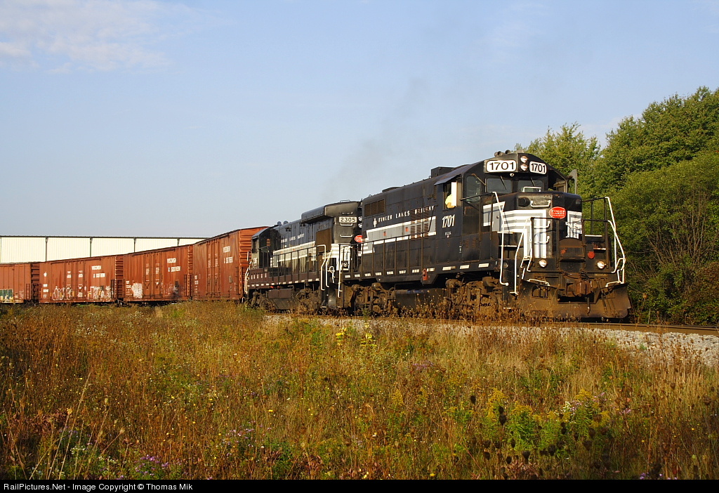 | Finger Lakes Railway train GY-1 with GP9 #1701 & B23-7 #2305 switches Seneca Foods at Geneva, NY on the morning of October 6, 2007. |