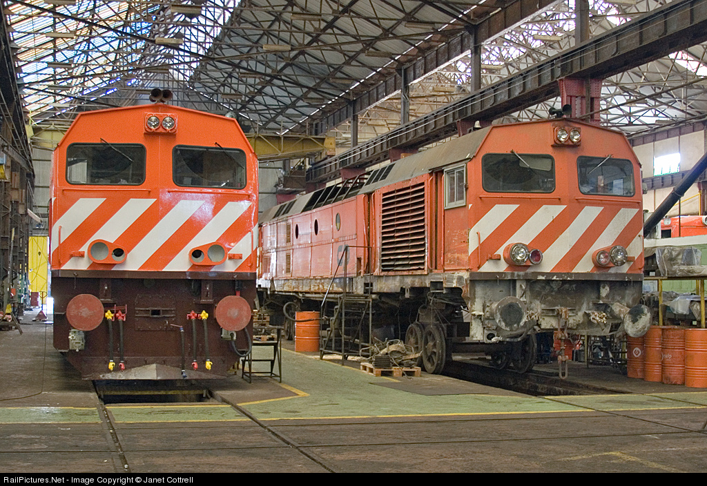 Two Bombardier 1961 class in the works at Barreiro. On the left is part completed #1964, on the right is #1971 which is awaiting it's turn for repairs after hitting a landslide near Vesúvio in the Douro valley.