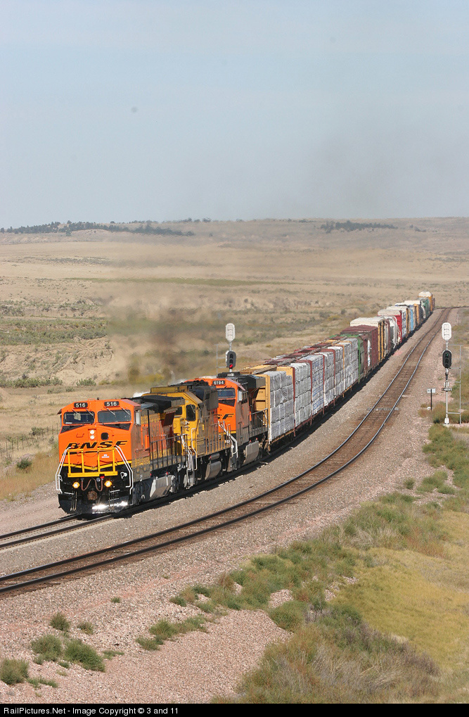 RailPictures.Net Photo: BNSF 516 BNSF Railway GE B40-8W (Dash 8-40BW) at Provo, South Dakota by 3 and 11