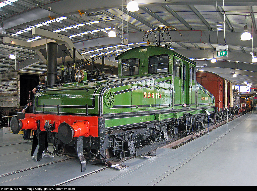 | This electric loco used third rail pick up or overhead wires and was built for shunting in 1904. It is now on display at the National Railway Museum annexe at Shildon, County Durham. |