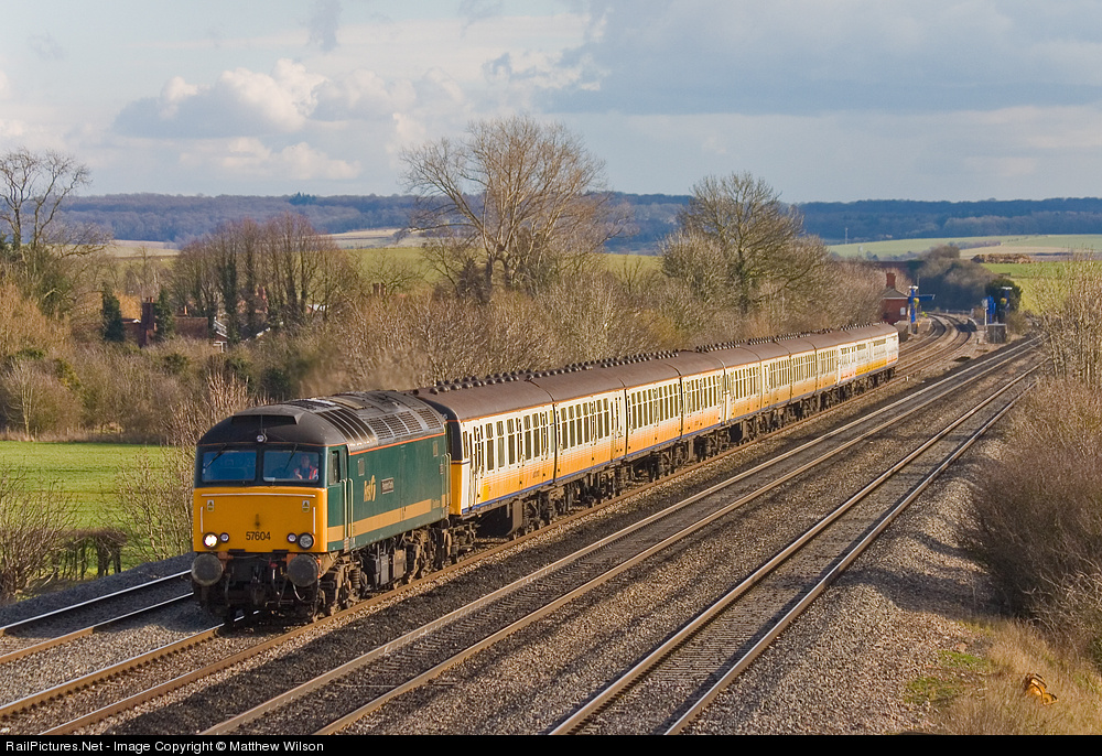 | After undergoing running repairs, it was decided that 57604 should undertake a test run before returning to sleeper duties. It is seen doing so on a move of slam door stock from the Southern region destined for Wales and the cutting torch! |