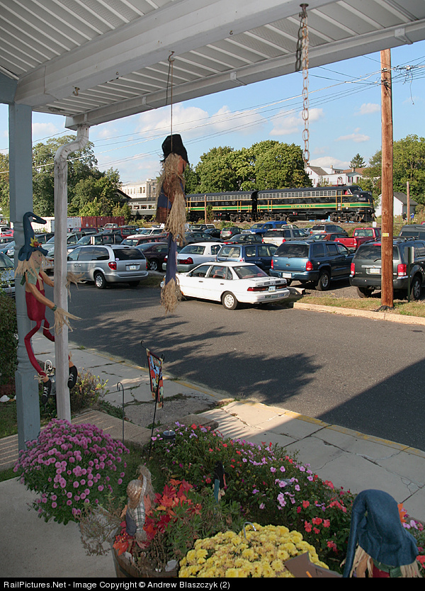 | The 2PM rolls back into Pennsburg after the 2 hour trip to Vera Cruz and return seen from a resident's porch decorated for Fall which is still eluding the area. Special thanks to the folks for allowing me to shoot from the porch. |