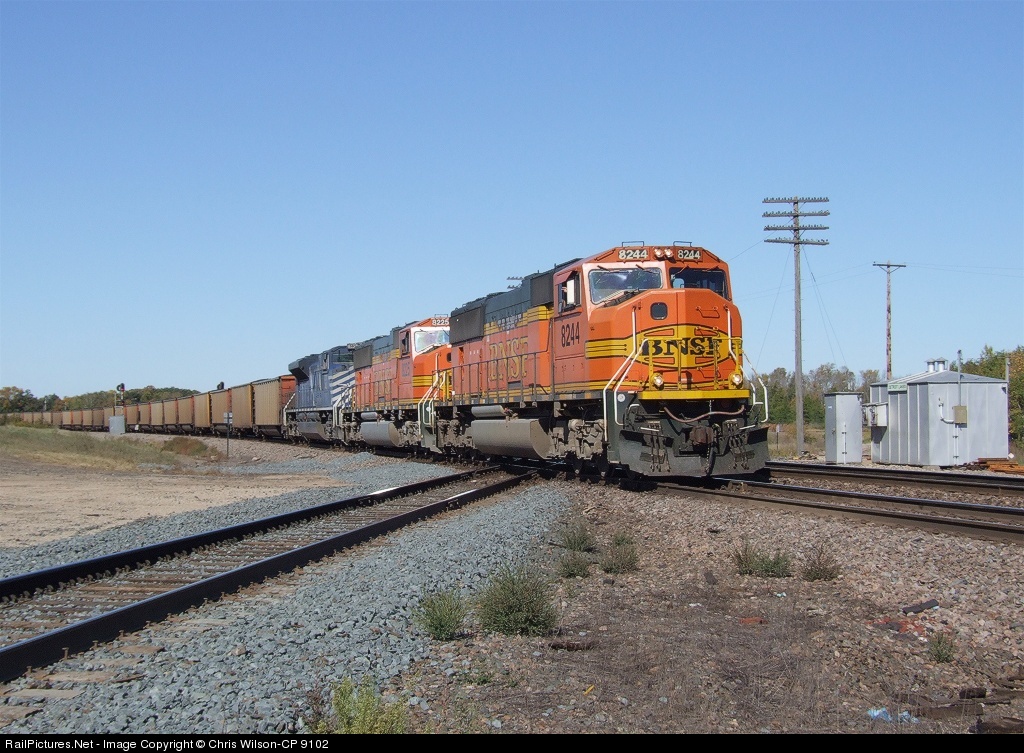 | BNSF 8244, BNSF 8225, CITX 140 haul 123 "DEEX/DETX" loads for Detroit Edison's Midwest Energy Terminal in Superior, WI. |