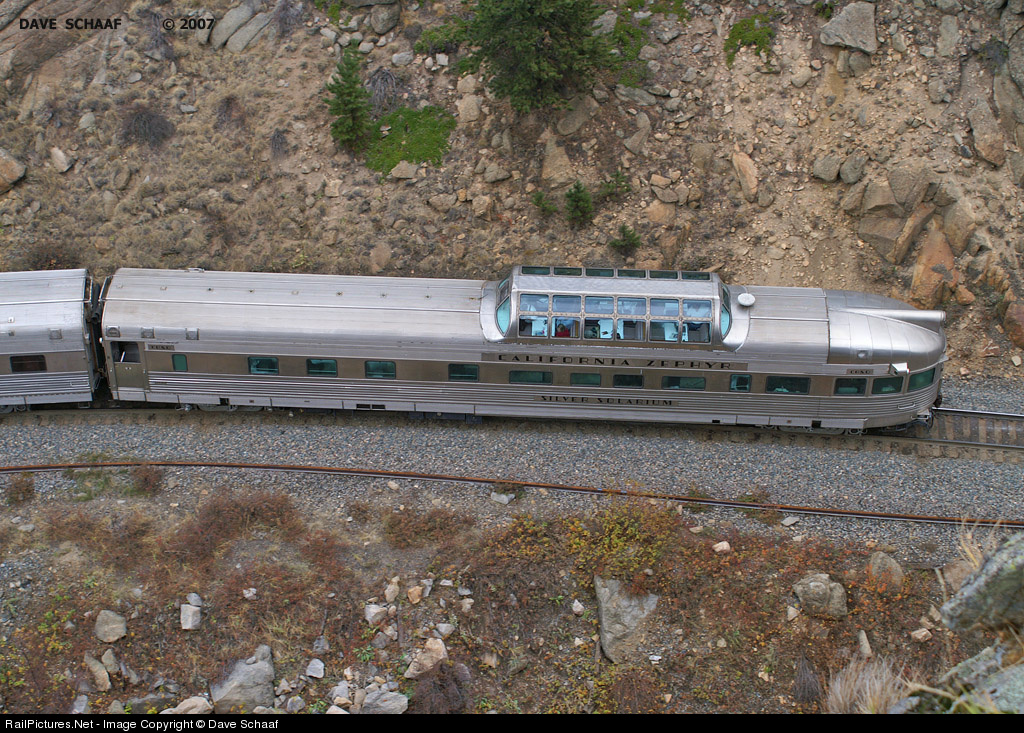 On this date, a vintage California Zephyr car brought up the rear of the train as a snow cloud moved above. The westbound "Silver Solarium" was originally owned by the CB&Q.