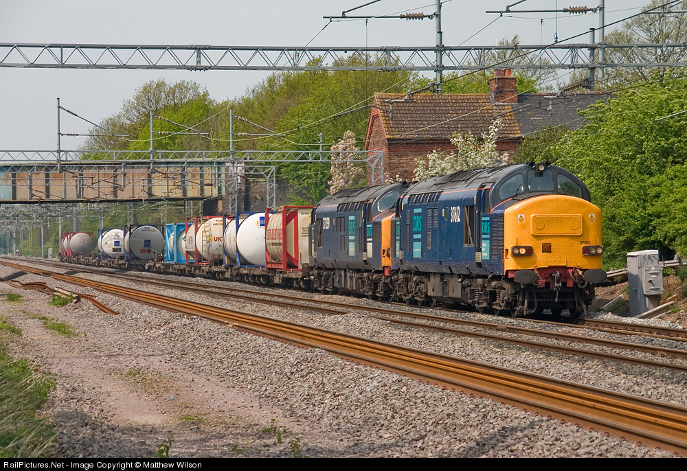 | For a short time after the introduction of DRS 4L46 Ditton to Purfleet was booked a pair of Class 37s due to the shortage of Class 66s. Here, 37612+37259 head the service South on the Up Slow |