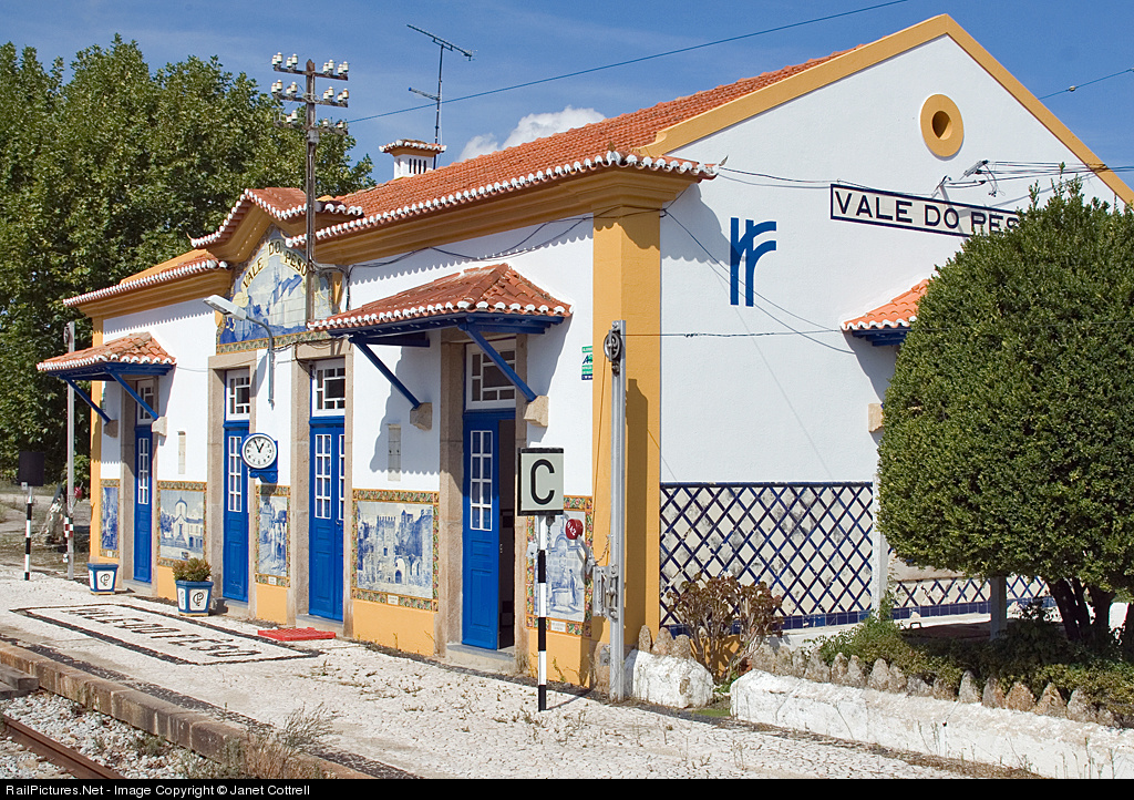 The attractive station of Vale do Peso on the line between Torre das Vargens and Marvão-Beirã. Note the name spelt out in contrasting mosaic on the platform.
