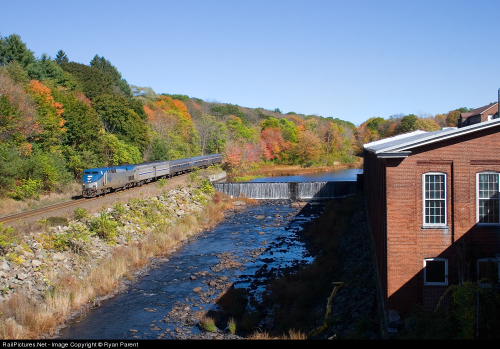 | The Amtrak Lake Shore Limited (Boston Section) passes the old mills and dam along the Quaboag River on the way west toward Albany, NY. |