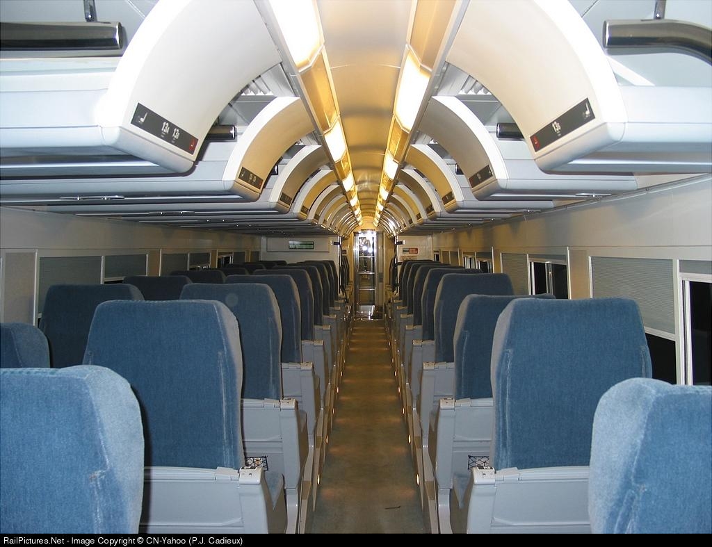 The inside of coach 7207 of the Renaissance fleet now being used on the Montreal-Quebec Corridor, new seating arrangement 2 seats/1 seat