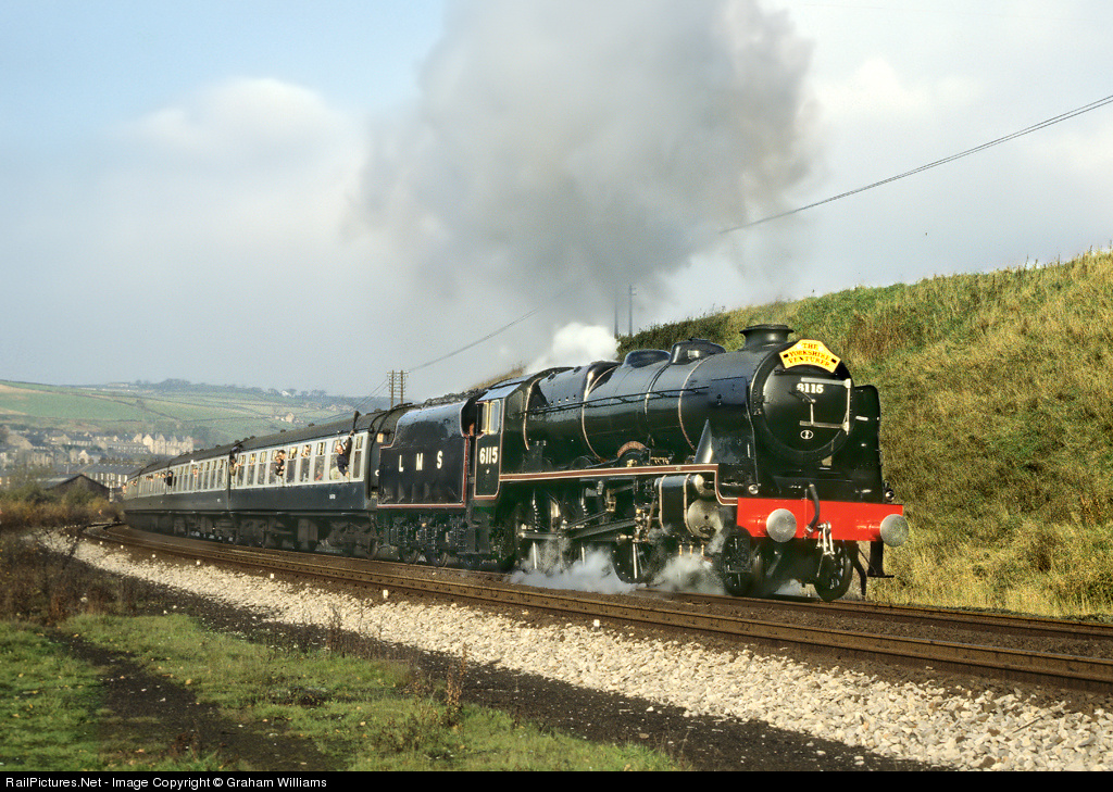 The handsome Royal Scot class no. 6115 Scots Guardsman at New Mills in November 1978 on its second main line special following restoration. Apparently, because the mechanical condition of the locomotive was not top-notch, British Rail only ever allowed it to make two main line runs. It has not run on the main line since, but is now under restoration at Carnforth with a view to a return to the main line.