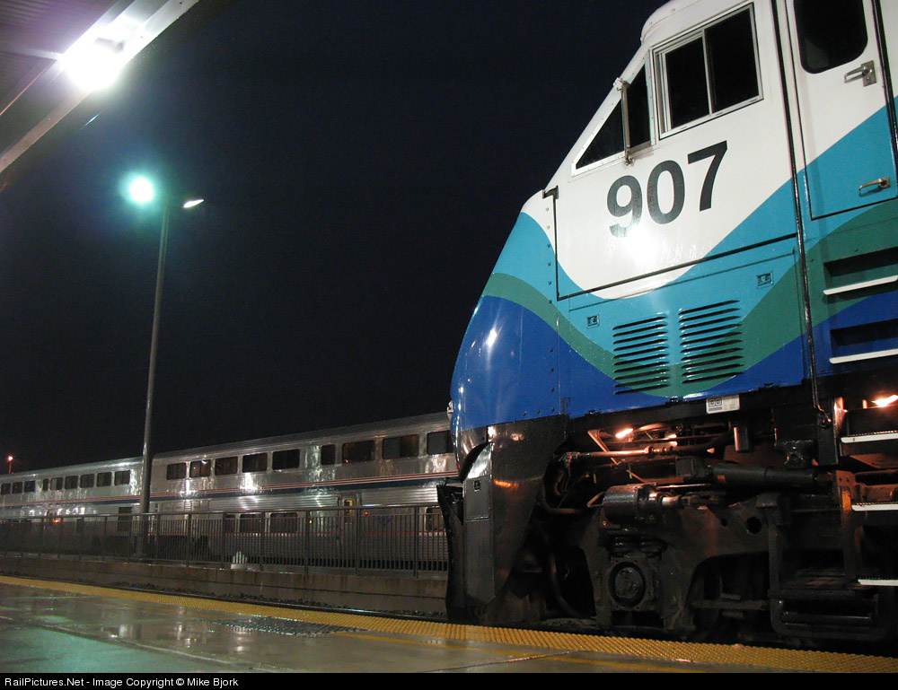 Cool, wet Northwest November rain greets Sounder 907 and the Empire Builder.