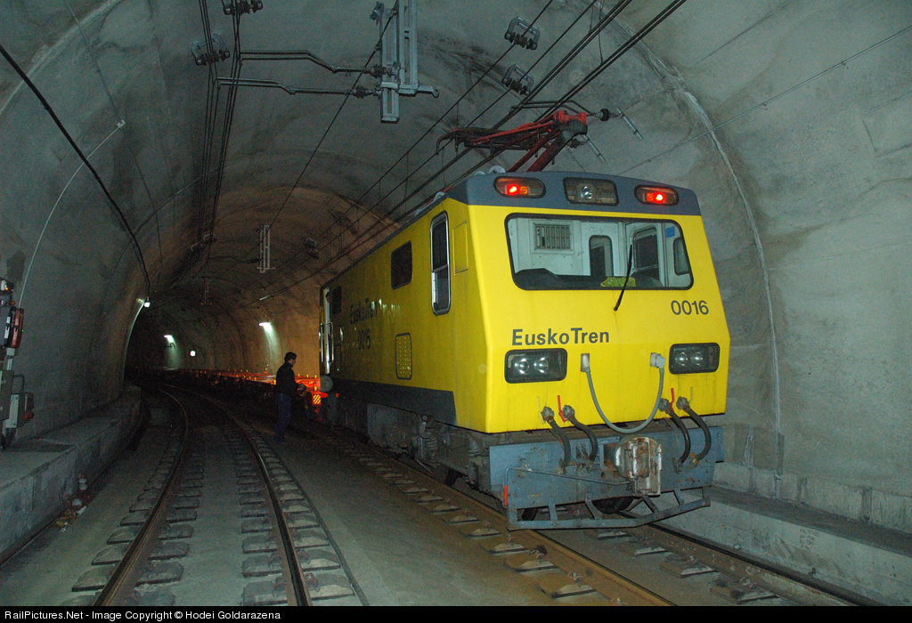 | Special freight train Eusko Kargo in the tunnel Lugaritz. The train was going from International Bridge until Lasarte, the ASEA 16 and 4 wagons Eusko Kargo |