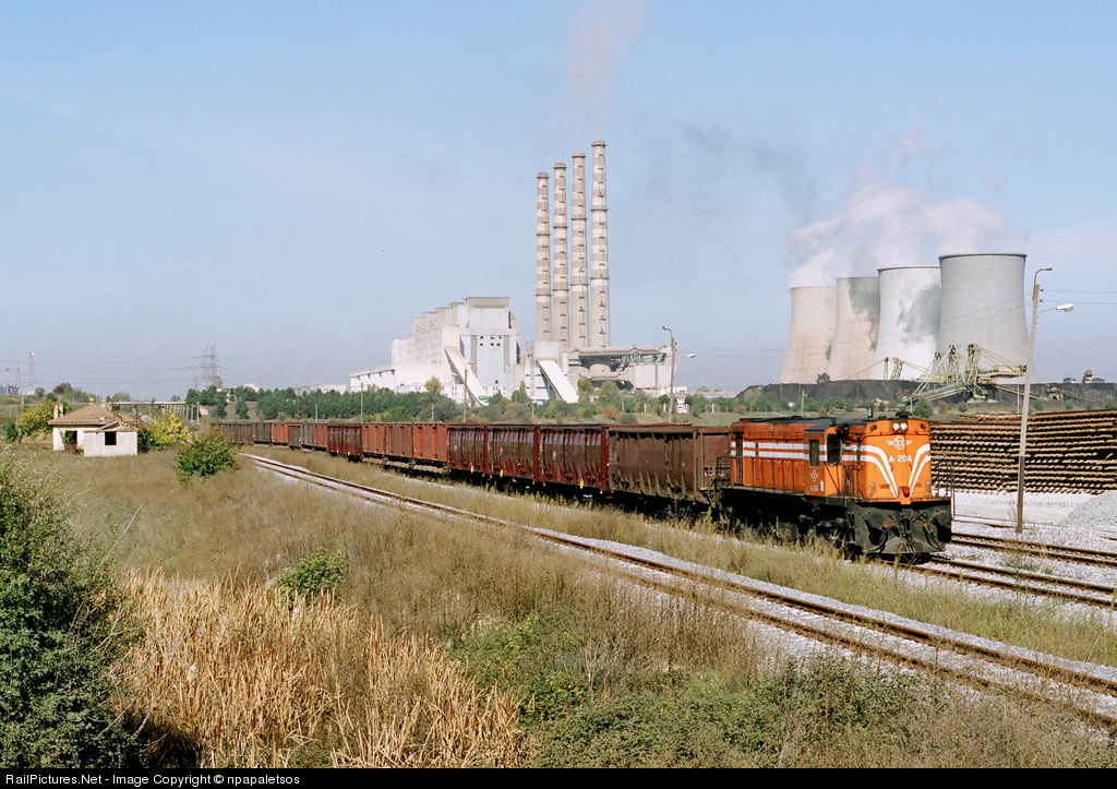 Baby Alco A204 enters Maurodendri station with a load of empty gondolas which will be loaded with sugarbeets. The power station of Kardia dominates the background.