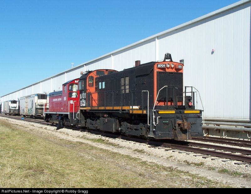 Canac ex-CN S13 8701 and BJRY 900 sit in Rochelle. Quite a neat sight to see a Alco engine.