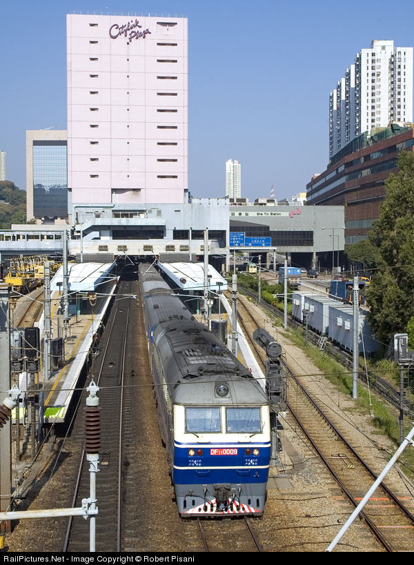 | CNR Intercity trains are listed as "non-stopping" on KCR station signs because they do just that...until they reach the main terminal at Hung Hom. This one is passing through Sha Tin Station. |